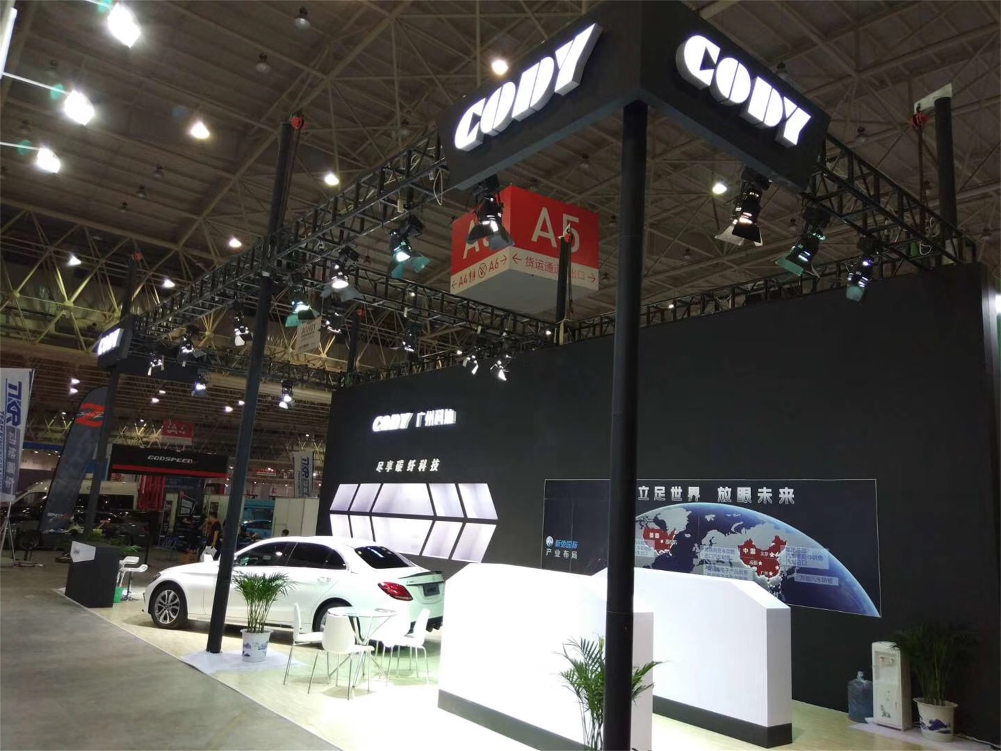 北京新弛基業(yè)商貿(mào)有限公司成立于2012年,注冊資金超過1億??偣疚挥诒本?,先后于廣州、浙江金華、成都、美國洛杉磯等城市成立全資子公司或關(guān)聯(lián)控股公司。 本次參展由司邁特設(shè)計搭建,主要展示自主研發(fā)的碳纖維產(chǎn)品,展臺以黑色為主色調(diào)以其高端、大氣的視覺沖擊力成為本屆后博會的亮點,很好的詮釋了新馳基業(yè)的品牌主張和產(chǎn)品特色。